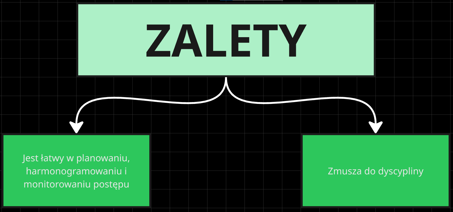 - Jest łatwy w planowaniu, harmonogramowaniu i monitororowaniu postępu - łatwo możesz policzyć ile co ci zajmie i na postawie tego oszacować, kiedy baza będzie gotowa w pełnii