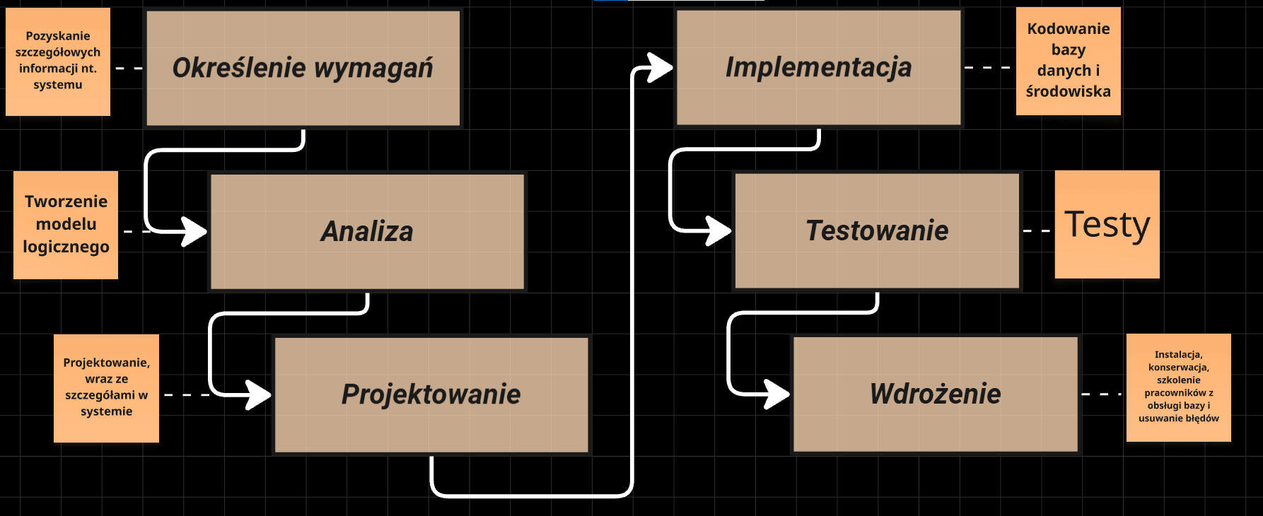 - Wdrożenie - Instalujesz, konserwujesz, szkolisz pracowników z obsługi bazy i usuwasz błedy (u klienta)